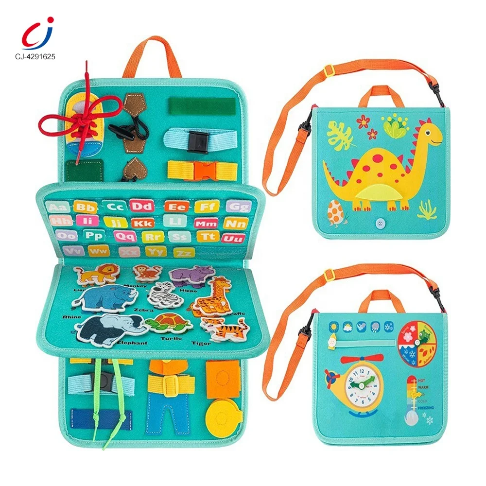Chengji New Montessori Busy Board Toy Baby Early Educational Cognitive Game Cute Dinosaur Sensory Activities Felt Busy Board Bag